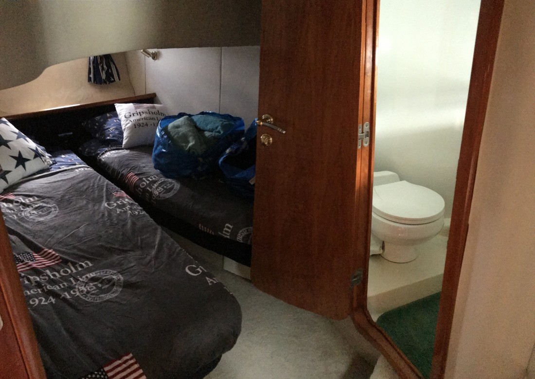 Motor: Volvo Penta TAMD 74 EDC 2x 480 hk 1.100 Tim. March 25 knop Max 31 knop Autopilot Raytheon Plotter Garmin/Raymarin SL631 Bogproppeller Elverk Kohler 6 Kw Passarell badplattform Värmare / AC Stereo Kyl inne /ute Microugn Landström ink Mastervolt laddare ny 2018 Septictank Varmvattenberedare Ankarspel i fören |
