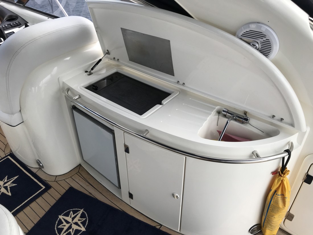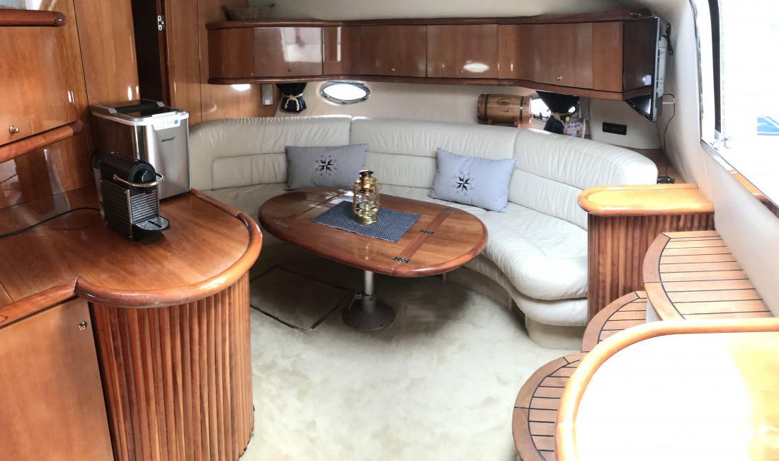 Camargue har fantastiska köregenskaper som ger en underbar känsla i sjön. Hon är utrustad med 2 st cabiner med egen toalett och dusch samt bäddbar dinett. Välutrustat kök och salong med skinnsoffa och bord. Fantastisk sittbrunn med sittgrupp, solsäng och wetbar.