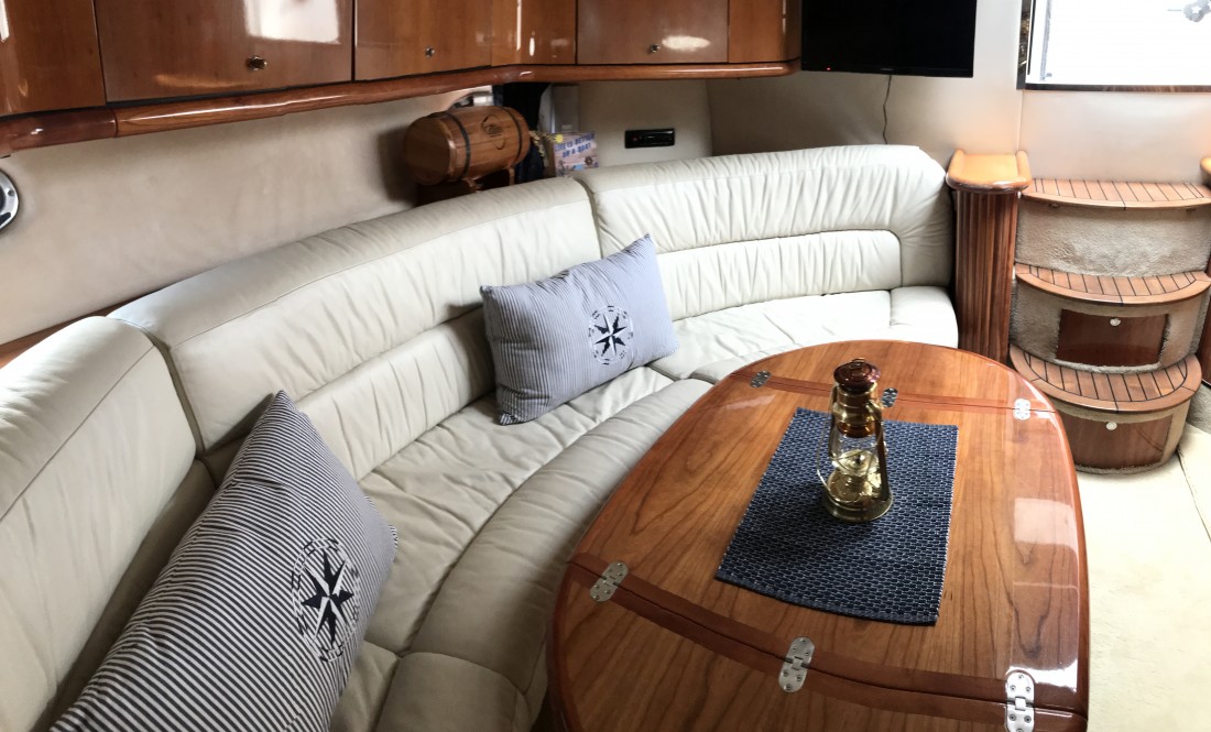 Nya dynor i sittbrunnen 2015, nya soldynor 2019, nytt kapell 2015, skrovet lackat 2015, Nya mattor samt teakgolv inne i båten 2015, Ny teak på badbrygga 2018.